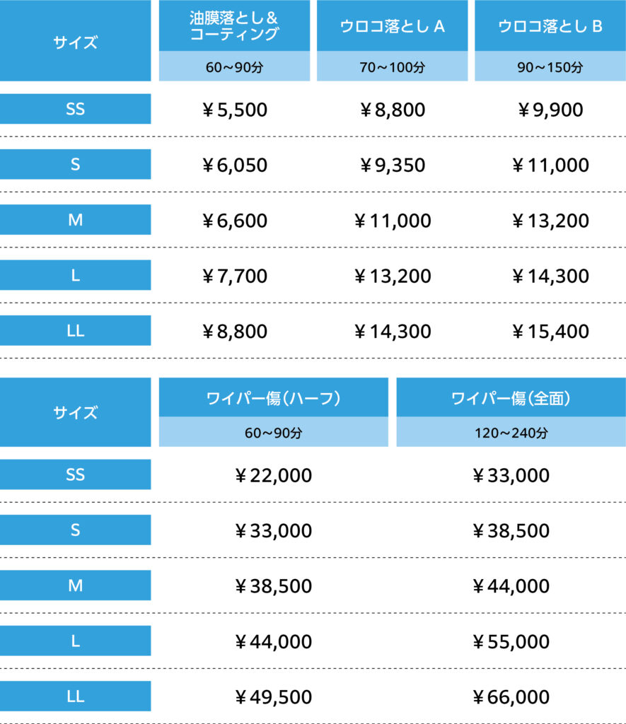 ※ウロコ落としA…水垢汚れが比較的少ないもの。1時間程度で簡単に落とせるレベル。
