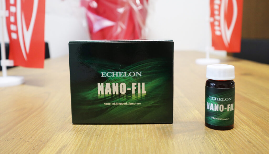 NANO-FILはボディコーティングとして、全く新しい構造である「3Dネットワーク構造被膜」を開発しました。従来の網目構造の中に「直鎖結合」を組み込むことで、高硬度な被膜性能を維持しながらも高い追従性のあるしなやかさを併せ持った、より体感できる性能を生み出します。硬さとしなやかさを併せ持つという不可能を可能にし、高性能なコーティングへと進化したECHELON NANO-FILは「インパクトのある膜厚感」、「シミを防ぐ超滑水性」、「従来を凌駕する耐候性」といったコーティングとして求められる最も重要な機能を実現しています。
