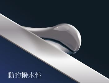 水滴が広がった状態で下に流れるように引いていきます。 撥水に比べイオンデポジットやウォータースポットができにくく、日々のお手入れが楽になります。