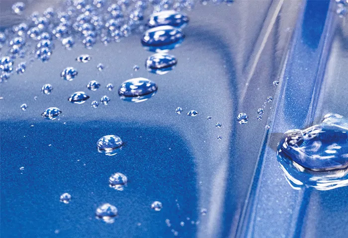 撥水コーティングは優れた水弾きを持つ一方で、シミ(ウォータースポット)やイオンデポジットが固着しやすいという欠点がありました。Zen-Xero DYNAMIXでは、「動的撥水」という独自技術で、この問題を改善。動的撥水は撥水の性能を維持しながら、水滴が塗装面をよりスムーズに流れるよう促進します。これにより、外観を美しく保ちながらメンテナンスも容易にすることができる、新しい撥水コーティングです。